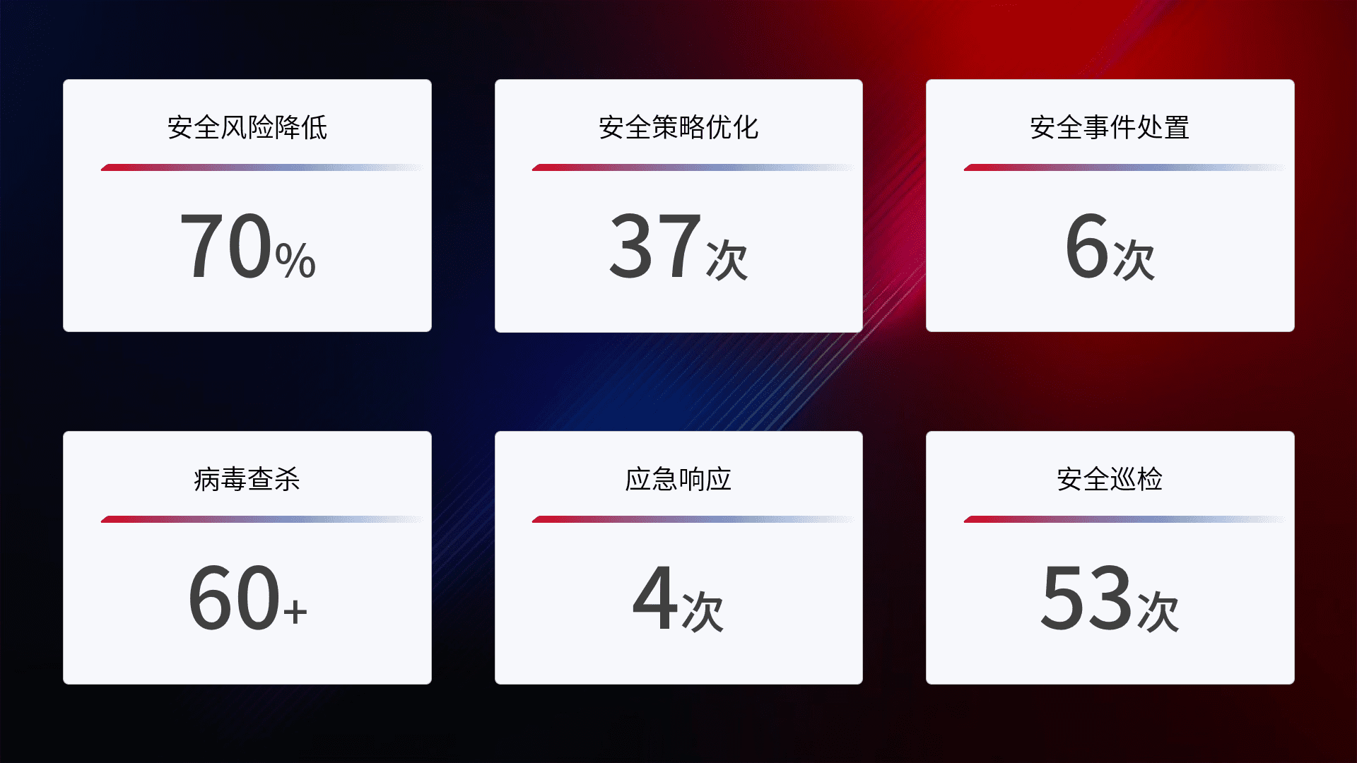 提供全面的安全事件报告体系,,,包括处置报告、、周报、、季度和年度总结,,结合持续监控,,帮助客户深入了解网络安全状况。。。。