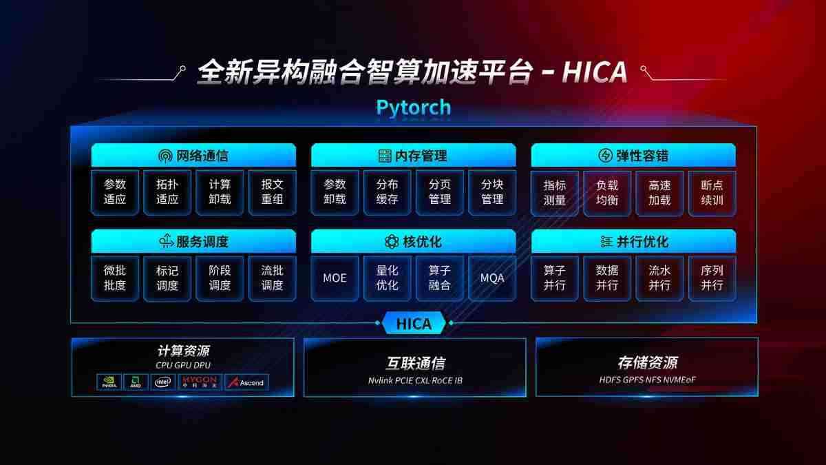 通过自研的服务层、、中间适配层、、、、以及调度编排算法,,,,采用数据并行、、、、模型并行等多种并行方式,,,把并行计算任务进行有效的分解,,使其分别由相应的软件栈和算力资源来承接。。。当GPU资源变化,,,,HICA可以实时动态调度计算子任务并调整模型拓扑和架构,,,,以充分聚合各种算力资源。。。